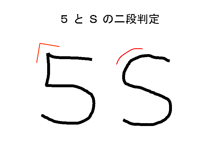 自由手書き文字の「S−5」の弁別は左肩の曲率の大小を判定すれば良いだろう。
