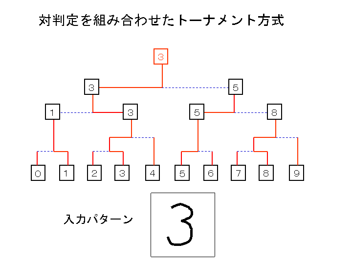 入力パターンが3であったとき、これに「0−1」の対判定を適用すると、
